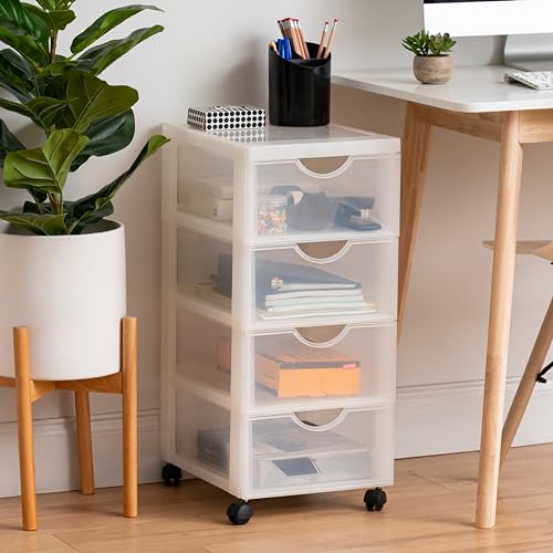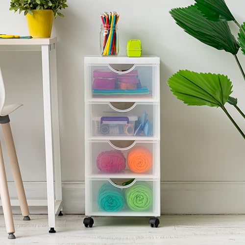 Iris Ohyama Cassettiera in Plastica con ruote, 4 Cassetti Piccoli, Biancastro, Maniglie facili da tirare, Per Camera Da Letto, Bagno, Scuola e Ufficio, Senza BPA, Contenitore, DDDC-004