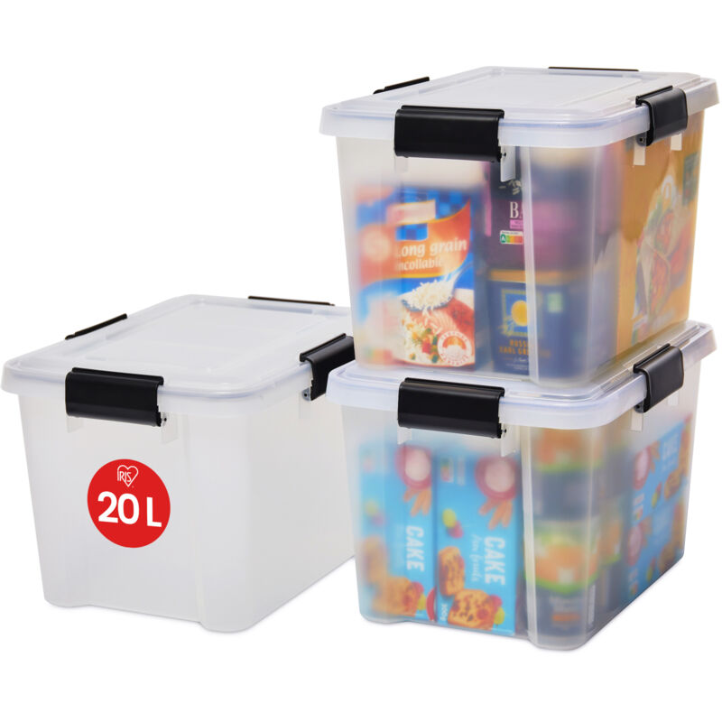 La gamma "Air Tight Box" di Iris Ohyama consiste in scatole resistenti alla polvere e all'umidità grazie alla guarnizione in silicone e alle clip del coperchio. La trasparenza delle scatole di plastica permette di vedere il contenuto senza doverle aprire. Possono essere utilizzati non solo in ufficio o in soggiorno, ma anche nel capanno del giardino o nel garage, senza il rischio di infiltrazioni di umidità. L'Air Tight può essere impilato e integrato. I volumi disponibili sono 28L, 50L e 70L. Nota bene: queste scatole sono resistenti all'umidità. Tuttavia, se vengono immersi in acqua, non sono ermetici. ? CONTIENE: Lotto di 3 contenitori con coperchio - Made in France ? DIMENSIONI: Esterne: 39 x 28,7 x 25,6 cm (L x P x A) - Interne: 29,5 x 22,5 x 23,3 cm (L x P x A) - Capacità: 20 L per scatola ✔️ UTILIZZO: perfetto per l'uso in garage, cantina o soffitta. ✔️ AIRTIGHT: l'anello di chiusura ermetico ti permette di proteggere i tuoi effetti personali da umidità e polvere. ✔️ IMPILABILI