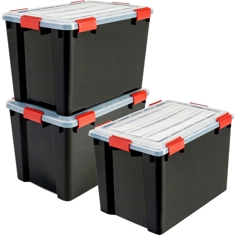 La gamma "DDAT" di Iris Ohyama consiste in scatole resistenti alla polvere e all'umidità grazie alla guarnizione in silicone e ai fermi del coperchio. La trasparenza delle scatole di plastica permette di vedere il contenuto senza doverle aprire. Possono essere utilizzati non solo in ufficio o in soggiorno, ma anche in un capanno da giardino o in un garage, senza il rischio di infiltrazioni di umidità. I DDAT possono essere impilati e integrati. I volumi disponibili sono 28L, 50L e 70L. Nota bene: queste scatole sono resistenti all'umidità. Tuttavia, se vengono immersi in acqua, non sono ermetici. ? IL PRODOTTO CONTIENE: 1 Lotto di 3 contenitori con coperchi ermetici - Made in France ? DIMENSIONI: Esterne: 59 x 39 x 38 cm (L x P x A) - Interne: 48 x 32,5 x 35,5 cm (L x P x A) ⚖️ CAPACITÀ: 70 L per scatola | 8 kg ✔️ UTILIZZO: perfetto per ✔️ UTILIZZO in garage, cantina o soffitta. ✔️ AIRTIGHT: l'anello di chiusura ermetico ti permette di proteggere i tuoi effetti personali da umidità e