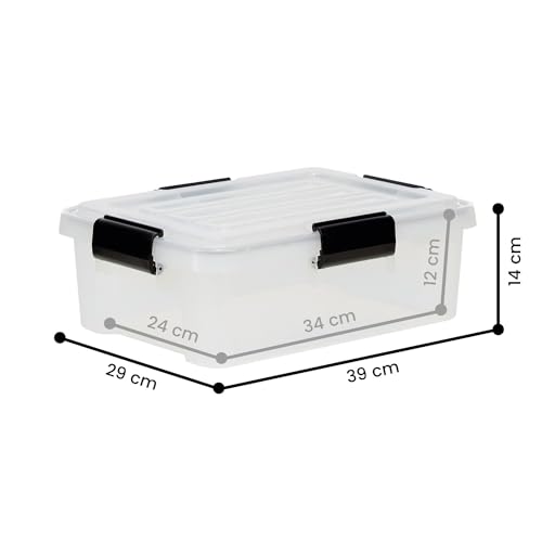 Iris Ohyama, contenitori di plastica impermeabili da 10 l con coperchio, Lotto di 4, DDAT-S, trasparenti, impilabili, clip di chiusura - L39 x P29 x A14 cm