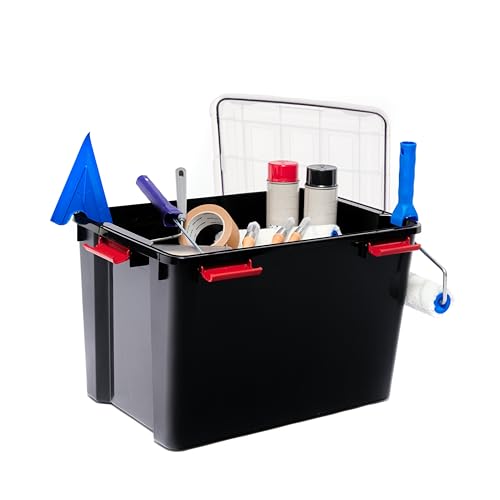 Iris Ohyama, Contenitori di plastica impermeabili con coperchio da 70L, Lotto di 3, Senza BPA, DDAT-LD, Nero, Impilabile, Clip di chiusura - L59 x P39 x A38 cm