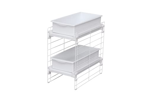 Iris Ohyama, Organizzatore per armadietti, sottolavello, estensibile, contenitore in plastica per armadietti, dispensa, alimenti e utensili - Vassoio a scorrimento UST-2V- Bianco