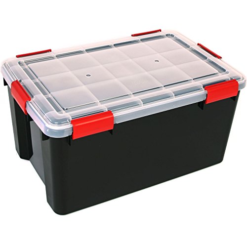 Iris Ohyama, Set di 2 scatole di immagazzinaggio ermetiche, 50 L, con clip, impilabile, garage, cantina, soffitta - Air Tight Box AT-L - Nero