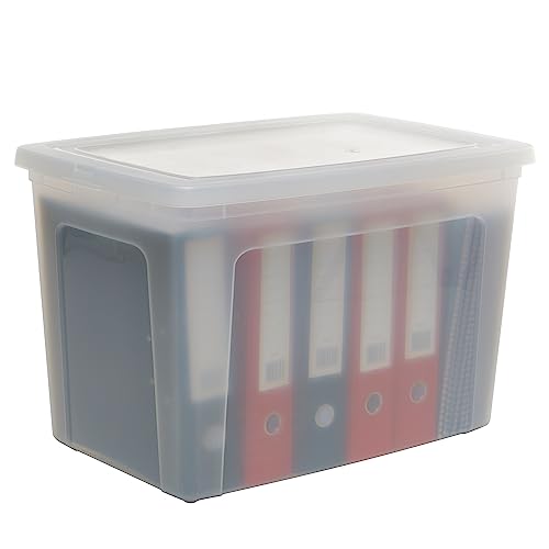 Iris Ohyama, Scatole, Organizzatore di stoccaggio in plastica, Set di 6, 70 L, Impilabili, Clip, Chiusura rapida con maniglia, Solido, Camera da letto, Soggiorno - DDMCB-70 - Trasparente