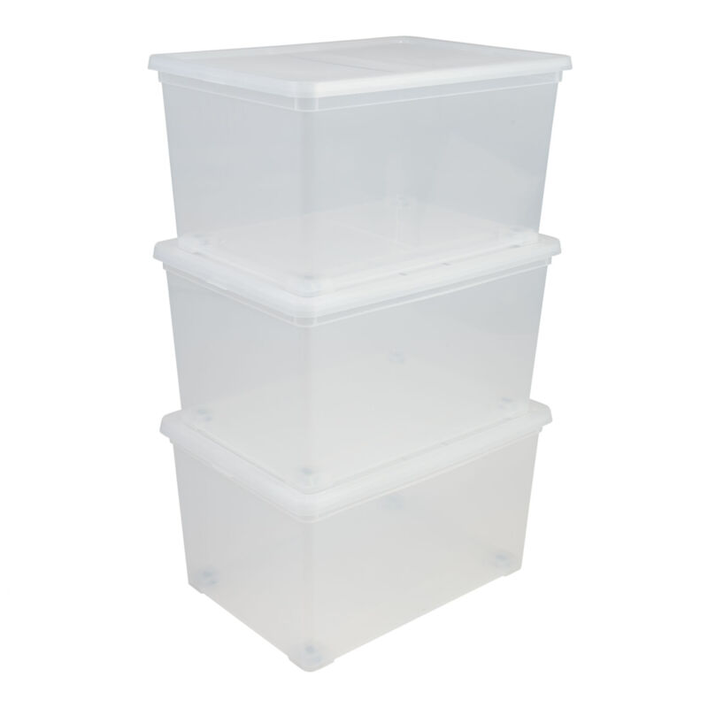 Iris Ohyama 3er Set Aufbewahrungsboxen mit Deckel auf Rollen NCBR-50 - 3x 50 L - L54 x B39,5 x H30,5 cm - Transparent