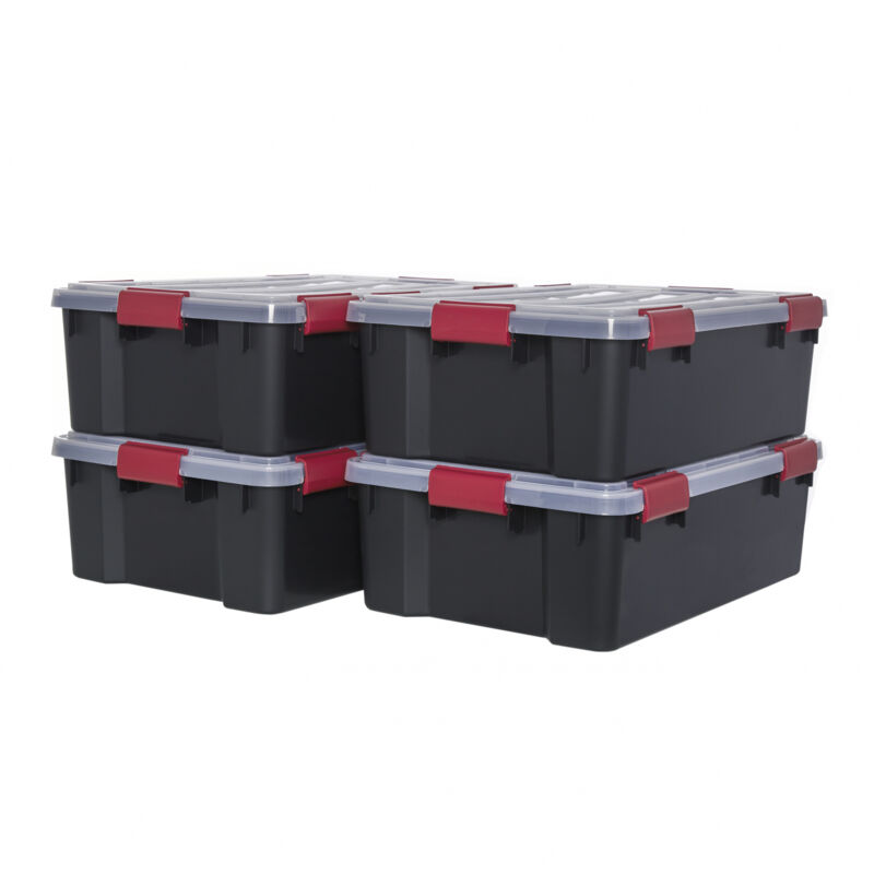 La gamma DDAT ha un'efficace funzione di tenuta. Il coperchio è dotato di 4 o 6 robusti occhielli che lo tengono fermo e assicurano il contenuto. Le scatole ermetiche possono essere utilizzate in uffici, garage o soffitte senza che l'umidità possa penetrare all'interno. La gamma AT comprende 5 diverse dimensioni di scatole ed è realizzata in materiale trasparente per una facile identificazione del contenuto. ? IL PRODOTTO CONTIENE: Lotto di 4 contenitori con coperchio - Made in France ? DIMENSIONI: Esterno: 39 x 59 x 19 cm (L x P x A) - Interno: 33 x 49 x 17 cm (L x P x A) ⚖️ CAPACITÀ: 30 L per scatola. Le scatole DDAT-LS sono perfette per conservare tutti i tipi di prodotti come articoli fai-da-te, abbigliamento o utensili da cucina. Il ✔️ DESIGN compatto delle scatole consente lo stoccaggio ideale in camera da letto, garage, cantina o soffitta ✔️ ERMETICO: Il coperchio sigillato da una guarnizione consente di proteggere i tuoi effetti personali da umidità e polvere. Accanto