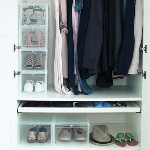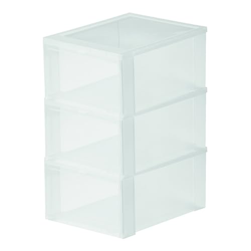 Iris Ohyama, Scatole, Scarpiera in plastica, 14L, Lotto di 3,, Impilabile, EUDF-M, Trasparente, Impilabile, Clip di chiusura- L35,5 x P28 x A18 cm
