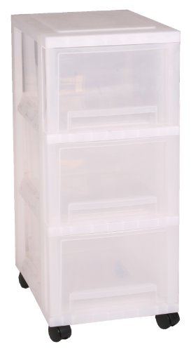 Iris Ohyama, Torre di stoccaggio, 3 cassetti da 16 Lcon ruote, maniglie ergonomiche, ufficio, Garage, bagno - Smart Drawer Chest SDC-303 - Bianco smerigliato