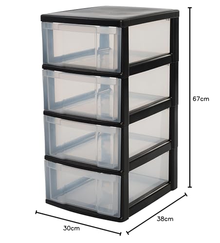 Iris Ohyama, Torre di stoccaggio, 4 cassetti da 11 L, con ruote, maniglie ergonomiche, ufficio, Garage, bagno - New Chest NMC-004 - Nero