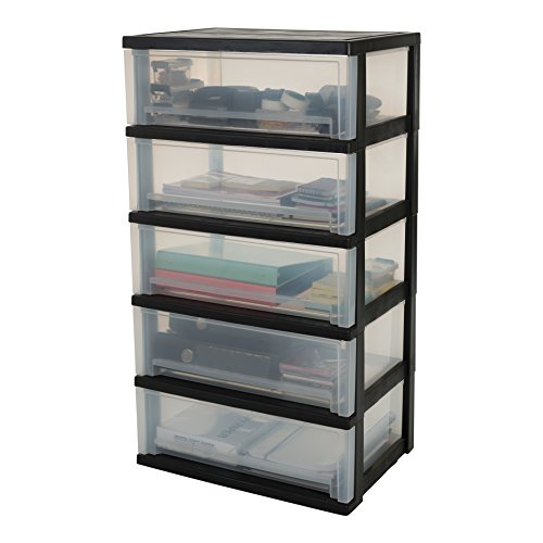 Iris Ohyama, Torre di stoccaggio, 5 cassetti da 30 L con ruote, plastica robusta, ufficio, Garage - Smart Wide Chest SWC-505 - Nero