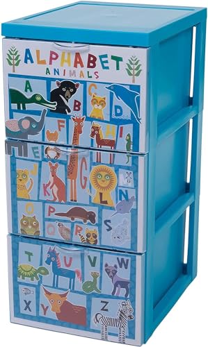 Iris Ohyama, Torre di stoccaggio in plastica, Cassetto per camera da letto da 15 litri, SCF-303, Alfabeto, Maniglia ergonomica - L39,5 x P29 x A61,5 cm