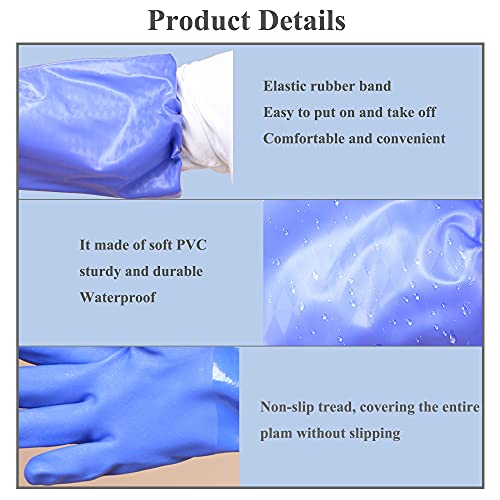 OHYER 1 Paia Guanti in PVC di Sicurezza Guanti da Lavoro Impermeabili Industriali Elastici Guanti Durevole Impermeabile PVC Guanti con rivestimento in cotone Resistente Agli Acidi e Alcali(67cm Blu)