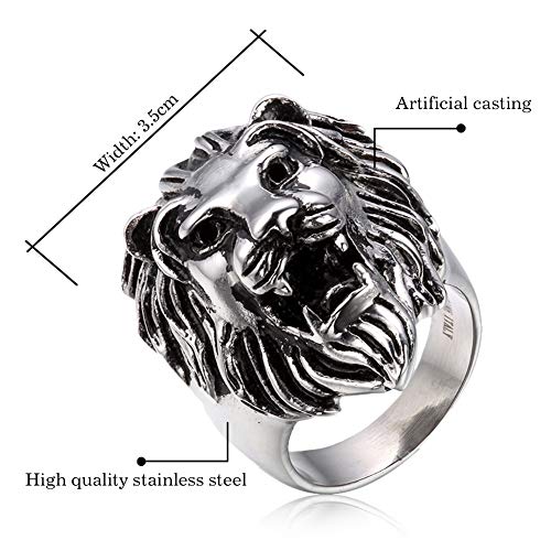 OIDEA Anello Testa di Leone Acciaio Inossidabile Fidanzamento Uomo Punk Rock Hip Hop Argento 27
