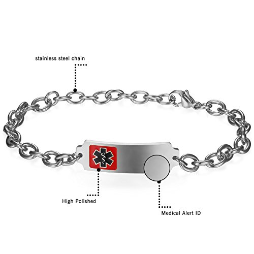 Oidea, bracciale in acciaio inox, da uomo e da donna con ID di allarme medico, bracciale a catena regolabile, argento rosso e Acciaio inossidabile, colore: Modello 1, cod. O0090010-DE