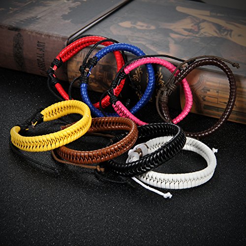 Oidea Bracciale Braccialetto per Uomo Donna Braccialetto in pelle intrecciato regolabile stile punk(8 colori/pezzi)