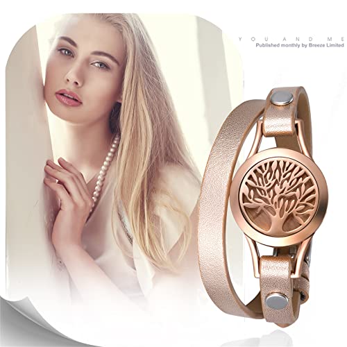 OIDEA Bracciale Donna Uomo Acciaio Inox Albero della Vita Cavo Magnete Rotondo Aperto Olio Essenziale Aromaterapia Cornice per Foto in Pelle Braccialetto 10 Pezzi Cotone Colore Oro Rosa