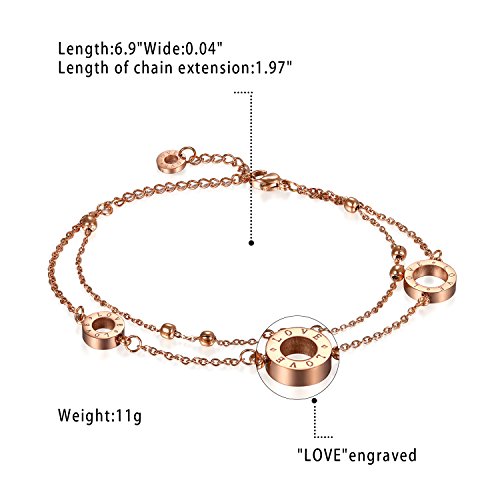 OIDEA Bracciale per Donna Braccialetto Acciaio Inox Love Doppio-Strato Oro Rosa(Puo'Anche Essere Cavigliera)