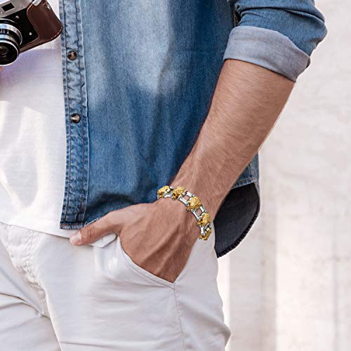 Oidea, bracciale da uomo con testa di leone, in oro e argento, larghezza 20 mm, con maglie larghe da motociclista, lucido, per motocicletta, nero e argento
