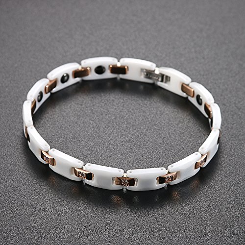 OIDEA, bracciale unisex di ceramica bianca e acciaio inossidabile in colore rosa e oro, bracciale magnetico per salute, con zirconi