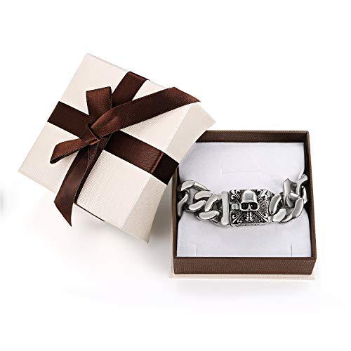 OIDEA Braccialetto Teschio Cranio Uomo Catena Acciaio Inossidabile Stile Punk Rock lucidato Grande Larghezza Argento