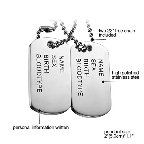 Specifiche:Dog Tag altezza*larghezza:2"(5.0cm)*1.1"(2.8cm);