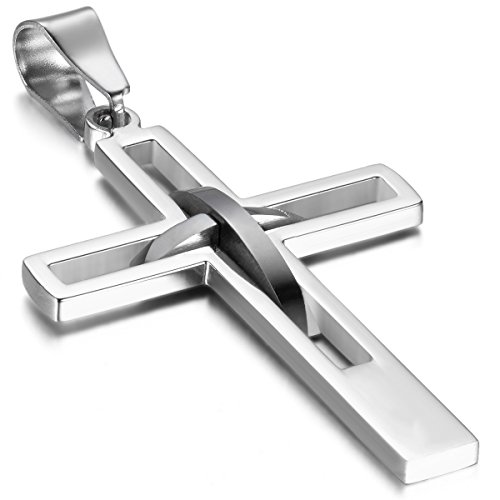 OIDEA Collana per Uomo Collana in Acciaio Inox Pendente Croce Hollow Argento