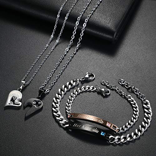 OIDEA Set Collana e Bracciale Coppia Lovers,Collana con Pendente Puzzle Cuore 'I Love You' Mosaico Strass,Braccialetto “Her King” “His Queen” Regalo per Amante o Migliore Amico/Amica