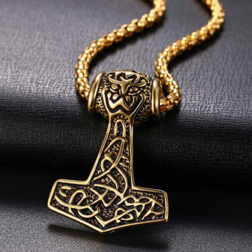 OIDEA Collana Catena con Pendente Ciondolo Martello di Thor in Acciaio Inox Uomo Oro
