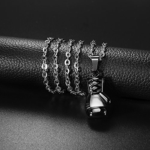 Oidea - Collana da uomo con ciondolo, in acciaio inox in colore nero con guantoni da boxe e ciondolo da uomo con catena in argento da 55 cm