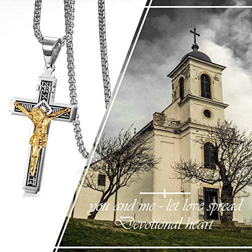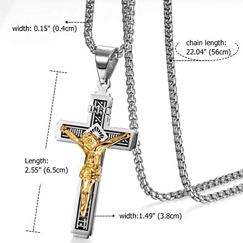 Oidea, collana da uomo con ciondolo a forma di croce della Bibbia, stile vintage Biker, in acciaio inox, con crocifisso di Gesù, con catena bizantina, 55 cm, colore: argento/oro, cod. O00180024