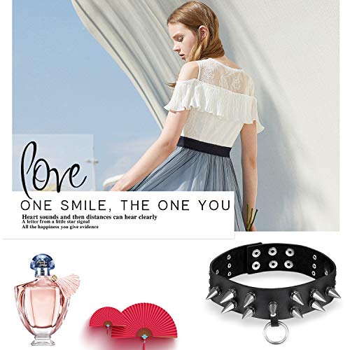 OIDEA Collana da donna in pelle, con borchie, nero argento, punk rock, collana in pelle con ciondolo a cerchio, regolabile