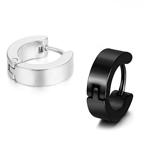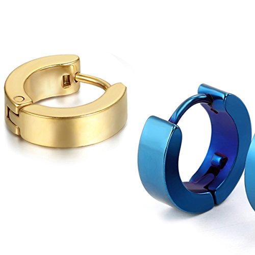 Oidea 4 coppie (8pcs) orecchini da uomo, Orecchini a cerchio orecchini perno in acciaio inox gioielli, oro blu argento nero
