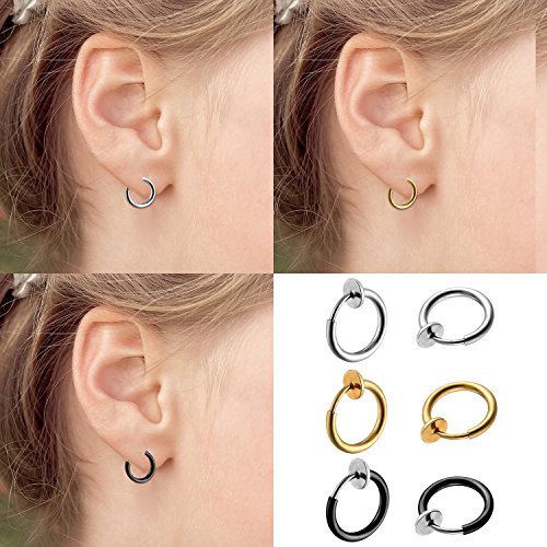 Oidea Orecchini acciaio inox Uomo Donna orecchini cerchi clip on Non Piercing nero oro argento(3 coppie)