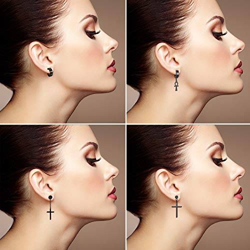 OIDEA [9 Paia Orecchini da Donna Uomo Tondi a Perno,Set di Orecchini Circolari Pendenti con Croce in Acciaio Inossidabile Plug Falso Orecchini a Cerchio Huggie Piercing all'orecchio Vintage