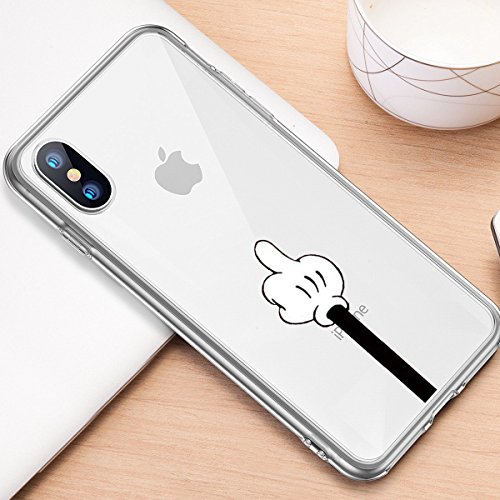 Oihxse Compatibile per Cover Trasparente iphone X/XS,Custodia iPhone XS/X Silicone Case Ultra Sottile Simpatico Disegno Morbida Protezione a 360 Gradi Slim Case Antiurto Anti-Graffio (dito)