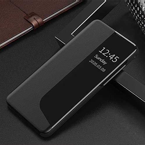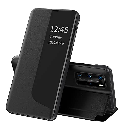 Oihxse Case Compatibile con Huawei P20 Pro, Smart Clear View Flip [Morbido PU Leather + Hard PC] Custodia, con Supporto di Stand Finestra Trasparente Intelligente Cover - Nero 1