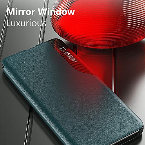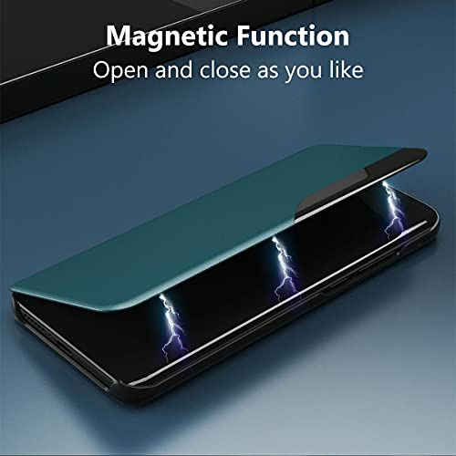 Oihxse Case Compatibile con Samsung Galaxy A10, Smart Clear View Flip [Morbido PU Leather + Hard PC] Custodia, con Supporto di Stand Finestra Trasparente Intelligente Cover - Verde