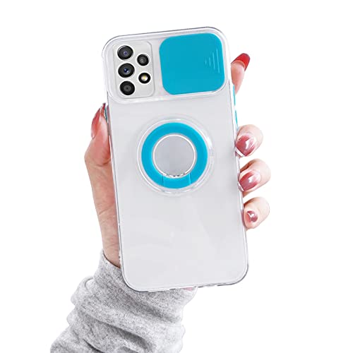 Oihxse Custodia Compatibile con OPPO Find X3 Lite, Trasparente Sottile Silicone TPU Morbido con Supporto e Protezione Fotocamera Case Slim Clear Stand Anello Protettiva Cover - blu