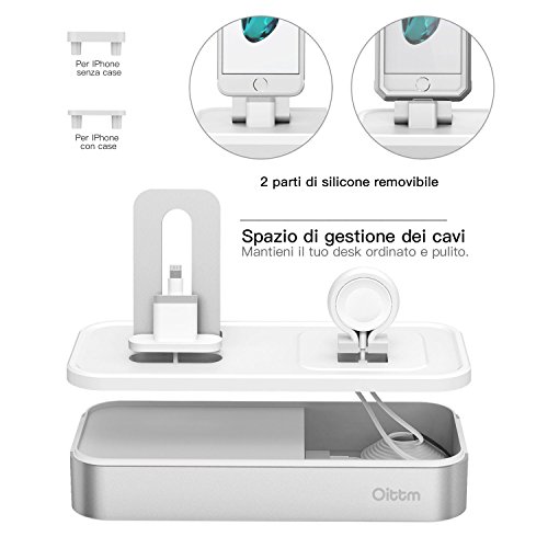 Oittm 5 Porte USB Supporto Ricarica per Apple Watch Series 3 / Apple Watch Series 1 / Apple Watch Series 2 / Apple Watch Nike+ / iPhone 7 / iPhone 8 / iPhone X / iPhone 8 Plus / iPhone 6S Plus / iPhone 7 Plus / iPhone 5S / iPhone SE / iPad Mini / iPod / Apple Pencil / Siri Remote (Argento)