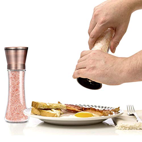 OITUGG Set smerigliatrice Sale e Pepe, Coppia Premium di mulini Sale e Pepe in Grana Grossa Regolabili, Acciaio Inossidabile Spazzolato e agitatori per Il Corpo in Vetro, Rame (Confezione da 2)