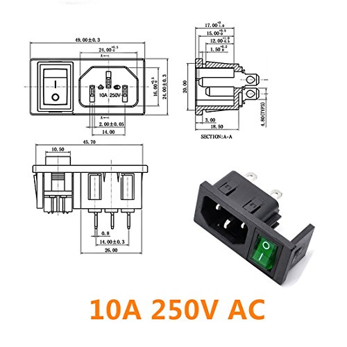 Oiyagai 5pcs IEC320 C14 connettore di alimentazione maschio del modulo di ingresso w interruttore AC 250V 10A (verde)
