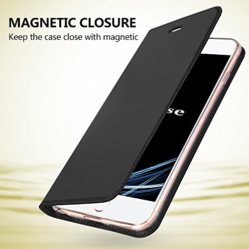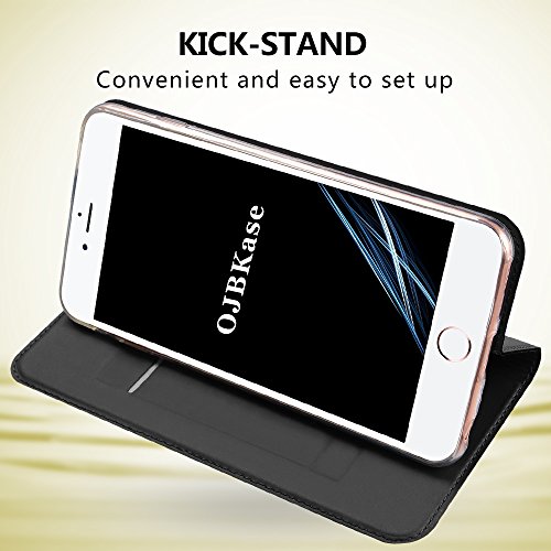 OJBKase Cover iPhone 6S Plus/iPhone 6 Plus, Flip Caso Custodia in Pelle PU Premium Portafoglio con Interno TPU Protettiva Flip Wallet Cover per Apple iPhone 6S Plus/iPhone 6 Plus (Nero Grigio)