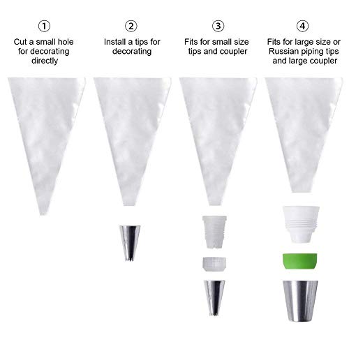 Okaytec 100 pz sac a Poche USA e Getta - sac a Poche Monouso Grandi di 2 Misure - Tasca da Pasticcere Professionale per Decorazioni Torta/Cake Design (con 3 Cinturini per Sigillatura a Tenuta)