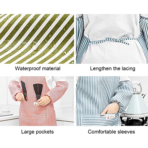【Design squisito】 Il grembiule da cucina è un classico design a righe, dotato di maniche delicate, e ha la funzione di prevenzione dell'olio e dello sporco;