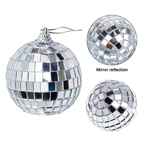 OKEDAR Venkaite Palle da Discoteca D'argento Palline Di Natale A Specchio, 6 Pezzi Appendere Palla Specchio Riflettente Per Effetti Di Luce Addobbi Per L'albero Di Natale Per Soffitti, 8 CM
