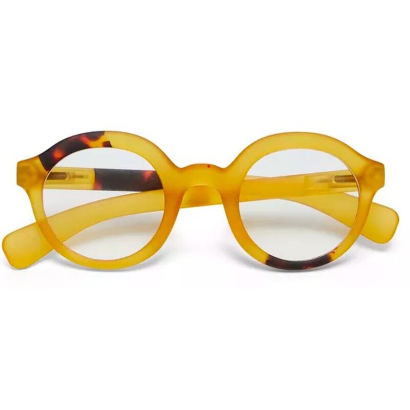 OKKIA Lauro - Occhiali dalla forma rotonda, con montatura soft touch-spring arms Colore: Giallo con tre punti Havana Ogni occhiale viaggia con la sua scatola e busta portaocchiale Gradazione: +1,50.