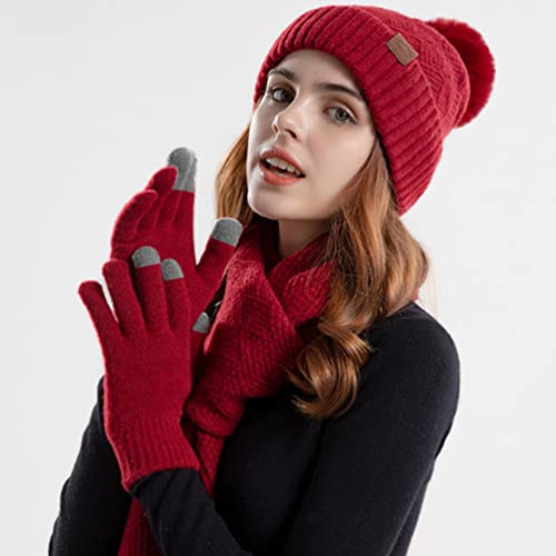 OKSakady Donne E Ragazze Cappello Sciarpa Guanti Impostato Pompon Beanie Metà Dito Mittens