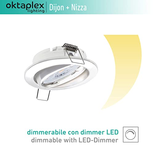 Oktaplex Set di 3 faretti LED Dijon - dimmerabili continuo - 4,8W 3000K 230V 380lm bianco caldo 110° - Faretto da incasso a LED in bianco dimensione foro 68mm