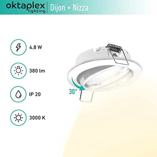 Oktaplex Set di 6 faretti orientabili Dijon - con modulo LED 4,8W 230V 3000K 380lm bianco caldo 110° - Faretti in bianco dimensione foro 68mm