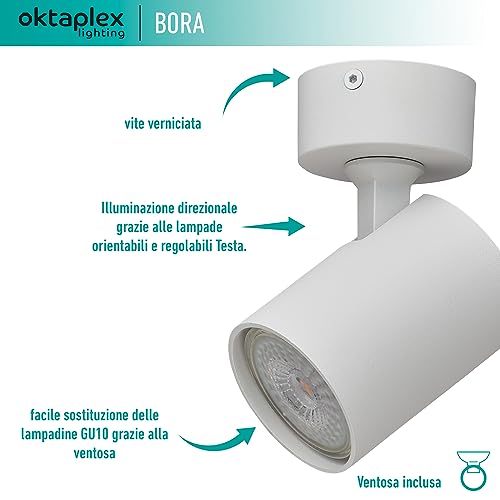 Oktaplex Bora faretto da soffitto 1 luce GU10 LED faretto spot 230V orientabile spot a parete bianco